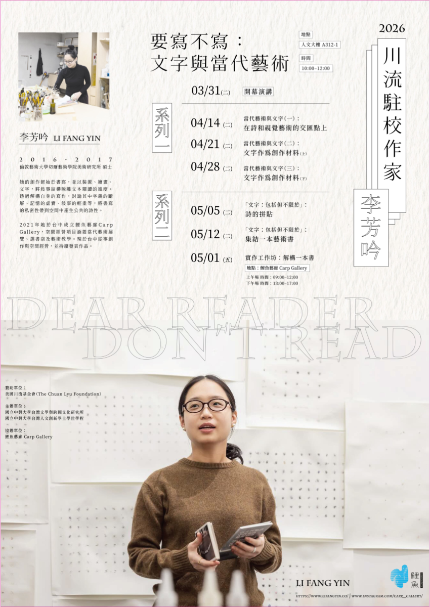2026春 中興大學「川流台灣文學駐校作家」:李芳吟系列活動
