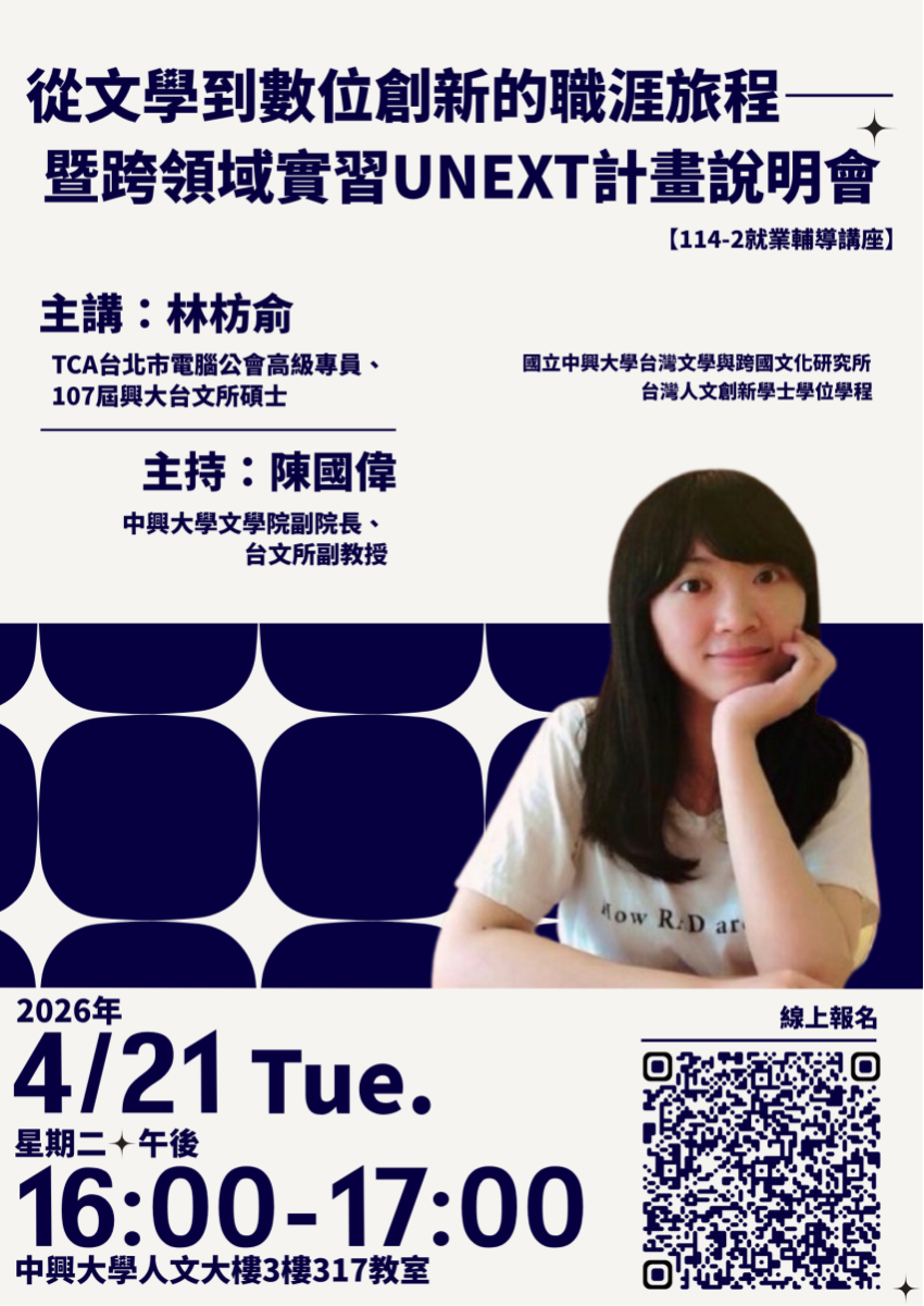 從文學到數位創新的職涯旅程——暨跨領域實習UNEXT計畫說明會